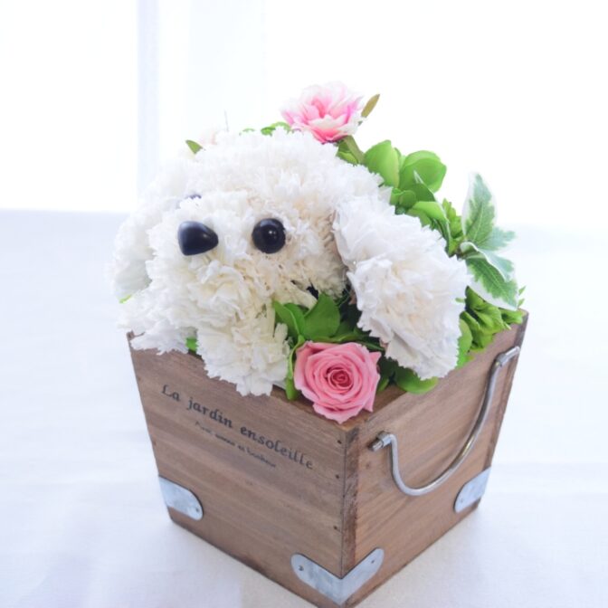 【トイプードル・白】花っぷり フラワーペット/プリザーブドフラワー 犬 プードル 花 カーネーション プレゼント 誕生日