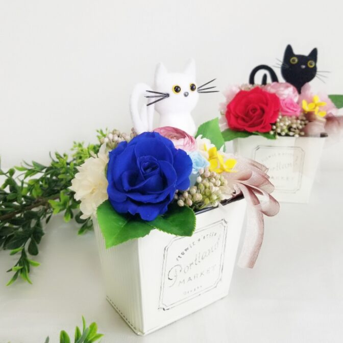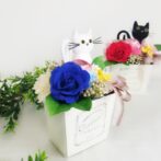 プリザーブドフラワーのローズが入った、可愛い花猫フラワーアレンジです!