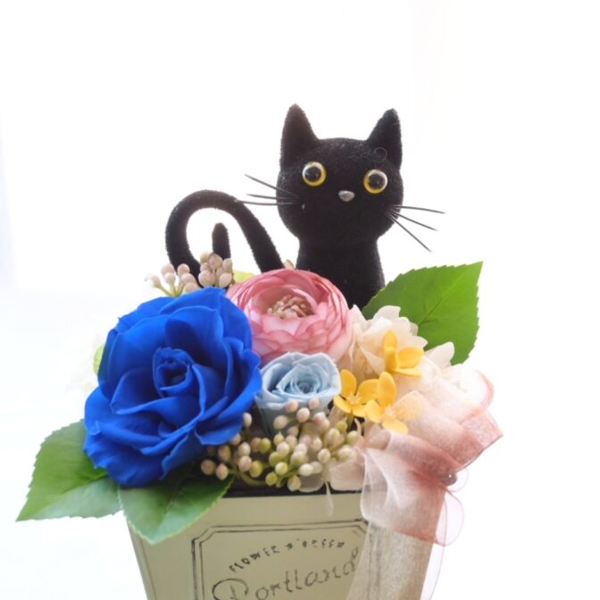 花と猫 No.4【ブルー】プリザーブドフラワー 猫 動物 ペット プレゼント 花 誕生日 フラワーギフト